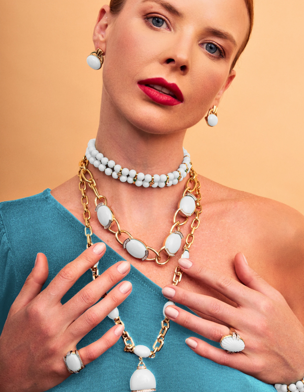 Bold yet ethereal, the Aura Ring with white agate blends sculptural design with timeless elegance. The intricately carved oval stone reflects light softly, while pavé-set zirconia accents add a refined sparkle to each side.