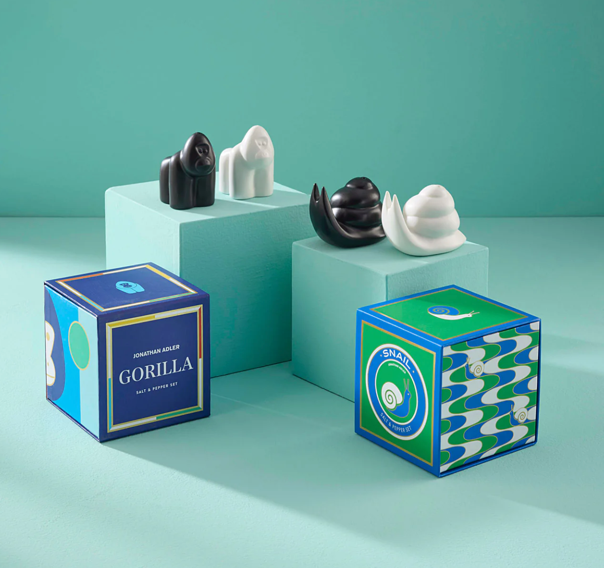 Don't forget a dash of mid-century modernism at mealtime. Featuring one of our classic Menagerie shapes, our Gorilla Salt and Pepper Set features two posh primates—one black, one white—crafted from high-fired porcelain.