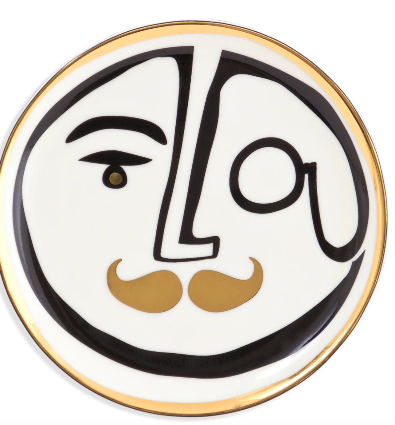Curious coasters accented by hand-applied gold accents, perfect for keeping surfaces dry in a stylish way. Our Marseilles design is a black and gold play on French '50 faces. Packaged in a nifty gift box, they make a perfect hostess present