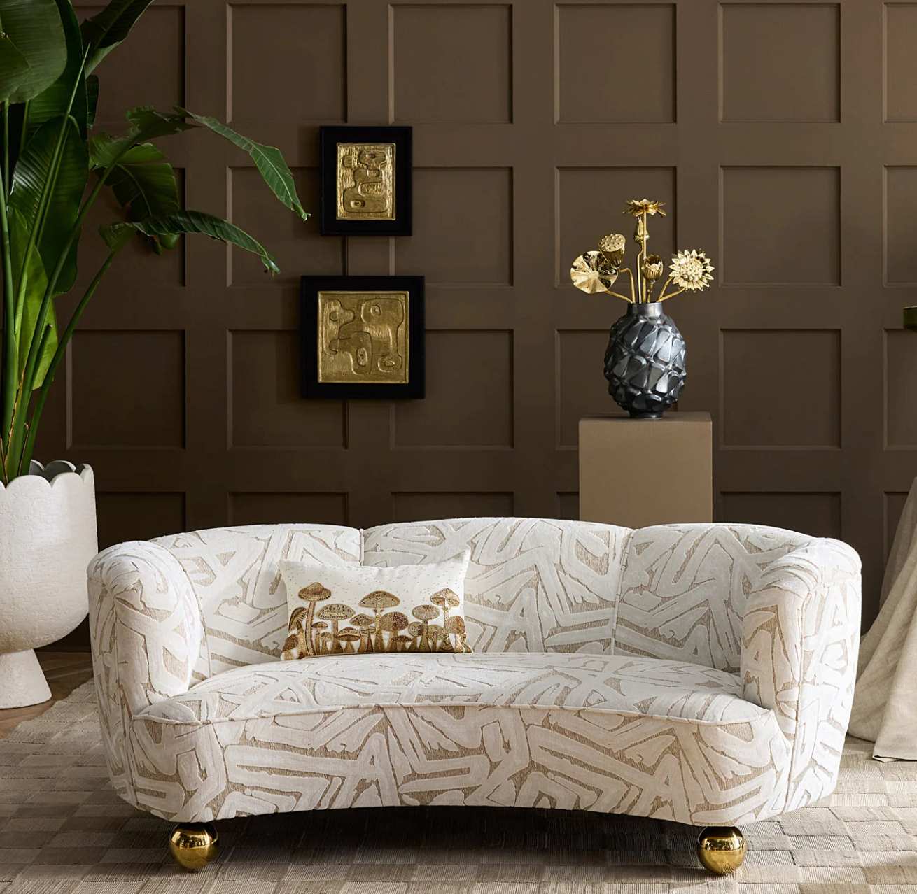 Shimmering gold beads embroidered on white linen—natural attractions you can cozy up to. The perfect rich hippie must-have for your eccentric and eclectic pillowscape. Pair them with solids and watch them pop, or layer them in a room already wild with décor.